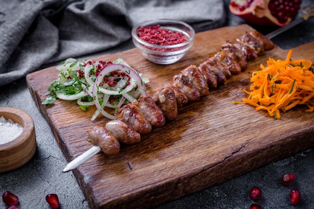 Шашлык из бараньей печени с курдюком